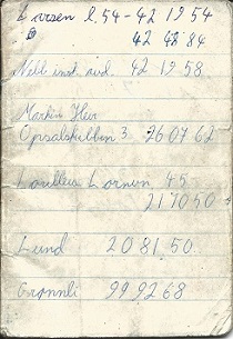 Nå har jeg begynt å tenke på, at det var en lyd av et smell, da jeg våknet, etter at jeg hadde blitt påvirket i 1975. Etter at jeg har tenkt på dette i noe tid, begynner jeg å sammenligne det med hvordan jeg også begynte å tenke på; hvordan forbryterne kunne ha gjort disse påvirkningene mot meg i romjula 1975. Det var i teksten “94. ‐ 29., 30. og 31. desember 1975” 16. januar. Det er noe typisk med hvordan jeg har begynt å huske denne situasjonen i 1975, at jeg først begynner å tenke, at det kan være det, eller kanskje det er det, osv. Nå har jeg et veldig uklart minne om at jeg hadde hørt et smell, da jeg våknet opp, etter at jeg hadde blitt påvirket i 1975. Jeg tenker det kan være at døren ble smelt igjen, og at jeg våknet opp etter det. Jeg husker også at jeg sa, “var det noe som smalt?” Personen bak skrivebordet sa, “kanskje du hørte at en dør ble lukket.” Dette er veldig utydelig. Men det er som om, det var noe som det, som hendte. Jeg husker at jeg ble opptatt av, at jeg måtte forte meg tilbake til arbeidet igjen. Jeg tenkte at jeg måtte ta igjen den tapte tiden. Jeg tenker at jeg arbeidet i spisepausene mine, eller i deler av spisepausene mine, etterpå. Jeg husker ikke hvor mange spisepauser det var igjen. Det er som om, at alt av dette forsvant i mitt sinn. Etterpå husket jeg bare at noen hadde spurt meg om å komme å se på noe, som hadde å gjøre med den elektriske installasjonen; og at da jeg kom til det stedet, hadde noen personer allerede ordnet det. Hele perioden omkring da dette hendet i 1975, har nå blitt mer og mer tydelig. Nå husker jeg at jeg kjøpte notisboka, for å skrive ned telefonnummeret til firmaet jeg arbeidet i, fordi jeg skulle arbeide alene i noen dager. Jeg arbeidet som en elektrikerlærling for en kunde, derfor arbeidet jeg utenfor det firmaet jeg var ansatt i. Jeg husker også at jeg sa det til den personen, som var vår kontaktperson i det firmaet. Da sa denne personen, at jeg skulle ringe en annen person, med et spesielt nummer, han hadde linje 54. Derfor, skrev jeg ned disse numrene på toppen av notisboka. De andre numrene jeg skrev ned i notisboka, var fordi jeg allerede hadde kjøpt notisboka. Jeg kjøpte den, for å ha det viktige telefonnummeret til firmaet, som jeg var ansatt i. Vår vanlige kontaktperson i firmaet skulle ha noen fridager. Og en annen person som jeg arbeidet sammen med, skulle også ha noen fridager. Navnet Martin Heir, er doktoren jeg hadde brukt da jeg behøvde en doktor tidligere. Han var vår familielege da jeg vokste opp. Jeg hadde skrevet det ned, for å ha det klart, om jeg trengte å ringe til en doktor. Men etter 1975, ringte jeg aldri, eller gikk, til den doktoren igjen. Nebb (Norsk Elektrisk & Brown Boveri AS) er navnet på det firmaet jeg var ansatt i, (Nebb inst. avd. er Nebb installasjons avdeling). Avdelingen var lokalisert i nærheten av denne kunden, det var bare noen få minutter å gå. Her er den første siden i notisboka: