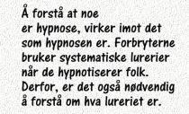 Jeg har lurt på hva alle disse forskjellige påvirkningene mot meg til slutt skulle ha blitt. Jeg har tenkt på at jeg ikke kan forstå nøyaktig hva det presise målet er. Nå forstår jeg at det presise målet aldri ble gjort. Personen som påvirket meg i 1975, gjorde ikke ferdig påvirkningen mot meg. Derfor, vet jeg ikke nøyaktig hva den endelige og viktigste påvirkningen over meg skulle ha vært. Hva det var; var noe han ikke gjorde, fordi han tenkte at jeg hadde sovnet. Jeg tenker at det var fordi, det var det eneste han visste om, at det kunne være, som hadde hendt med meg. Jeg tenker på at alle de forskjellige påvirkningene mot meg, skulle ha hatt en presis og nøyaktig hensikt. Men hva det var; var noe som aldri ble gjort. Så når jeg ikke forstår hva det er, er det fordi det ikke ble gjort. Jeg tenker det skulle ha vært definert et mål, med alle påvirkningene mot meg, som om jeg gradvis skulle ha nærmet meg blinken i skyteskiva. Før jeg hadde nådd frem til det målet, kunne det kanskje være at jeg kunne ha beveget meg i sikksakk, spunnet rundt, gått frem og tilbake, osv. Dette er hvordan jeg tenker at det kan være, at det var ment å bli. Men jeg vet ikke hva det skulle ha vært. Det er umulig for meg å finne ut mer, om hva forbryterne har gjort mot meg. Det de har gjort mot meg, er å lure meg. Forbryterne har ikke informert meg om hva de gjør; derfor vet ikke jeg det. Jeg vet bare noen få ting. For meg, forklarer vitenen om hva forbryterne gjør, hva det er som foregår i verden i dag. Jeg tenker at andre også kan få den samme forståelsen; at vitenen om hva forbryterne gjør, forklarer hva som foregår i verden i dag. ▪ Da jeg lå og hørte på hva forbryterne snakket om, når de trodde jeg sov i 1975, tenkte jeg: “De snakker om kriger. De lager kriger. Dette er noe ingen vet om. De gjør noe forferdelig.” Dette er noe viktig. Jeg fikk et tydelig inntrykk av at disse krigene var noe viktig for dem. De påvirker alle andre til å kjempe mot hverandre, for å vinne deres egen krig på den måten. Deres egen situasjon er at de slapper av, og sitter og ser på hvordan de har fått alle til å kjempe mot hverandre. Jeg tenker at de angriper menneskehetens utvikling av kunnskap og forståelse. Den kunnskapen jeg tenker på, er kunnskapen som har å gjøre med menneskene og våre samfunn. Utviklingen av kunnskapen på dette området, utviklet seg samtidig med utviklingen av kunnskapene på alle andre områder. Det var en situasjon fra 1900, som begynte før den tiden, som; som et hele, utviklet vår kunnskap på alle områder. Dette er at forbryterne angriper menneskeheten. Det er at de ønsker å ha makten over menneskeheten. Det er mulig å forstå; at hvordan forbryterne ønsker å ha makten over menneskeheten, det er ikke noe annet enn en veldig alvorlig forbrytelse. Det er mulig å forstå at alt de gjør er feil; hver enkelt ting av det, og det hele av det. Forbryterne lager kriger der alle de stridende partene er deres fiender. Forbryterne er alle partenes skjulte fiende. Forbryterne har utviklet en metode der de påvirker oss alle, til å lage alle slags konflikter, fordi de ønsker å vinne mot oss alle. Jeg tenker forbryterne ikke bryr seg om meg, og ikke tenker på meg mer. Det er nå 41 år siden dette ble gjort mot meg. Jeg tenker, at de tenker, at jeg bare har blitt mer og mer ødelagt. Påvirkningen av meg mislyktes. Jeg tenker at de ikke ønsker å tenke på det. Jeg tenker at de ønsker å bry seg om andre ting, som de lykkes med å gjøre. ▪ Det er nødvendig å avsløre disse forbryterne. De er passive. De kjemper ikke mot oss med våpen. De påvirker oss til å kjempe mot hverandre med våpen. Derfor, er dette en passiv og farlig fiende. Det er nødvendig å finne ut om dem; det er hva det er, som er farlig for dem. Disse forbryterne angriper oss ikke med vanlige våpen. De gjør noe annet; som vi må finne ut om, forstå, og gjøre noe med på en fornuftig måte. Disse forbryterne er ikke et land eller en kjent statsmakt. De er bare noen mennesker som vi ikke vet om hva gjør. Fordi forbryterne har skjulte mål bak hva de har påvirket oss alle til å gjøre, på forskjellige måter; er det nødvendig for oss å slutte å gjøre det disse forbryterne har påvirket oss til å gjøre. Vi må begynne å finne ut om dem, istedenfor å gjøre det de ønsker. De har lurt oss alle, det er sannheten. Deres påvirkninger er også ekstremt sterke, det er også sannheten. Når vi forstår om dem, da er det mulig for oss alle å begynne å lure dem. Samtidig, er det viktig at vi slutter å gjøre alle de uriktige tingene, som de ønsker, at vi skal gjøre. En av deres lurerier er, at de har påvirket oss til å tro, at det de har påvirket oss til å gjøre, er riktig å gjøre. Det lureriet er basert på; av vi mangler nok viten, og ikke vet, at det vi tenker vi vet, er noe feil. Forbryterne har påvirket oss alle til å gjøre feil på forskjellige måter. Jeg tenker at det, som har hendt med meg, kan hende med alle menneskene i verden; at alle får en motreaksjon mot disse påvirkningene i seg selv. Denne motreaksjonen vil bli sterkere og sterkere, etter at den har begynt. Før vi vet noe, er denne motreaksjonen ingenting. Etter at vi vet noe, vil denne motreaksjonen bli mer og mer. Vi er ikke fiender; vi har bare blitt ofre for det forbryterne gjør. Vi har bare blitt ofre for noe vi ikke har visst. Når forbryterne vet noe om oss, som vi ikke vet; da kan de si til hverandre, at vi er dumme. Når vi vet noe om forbryterne, som de ikke vet; da kan vi si til hverandre, at de er dumme. Det beste vil være, at alle de forskjellige menneskene i verden, finner en måte å komme i kontakt med hverandre på. Og så; at vi alle begynner å finne ut om disse forbryterne, så det blir mulig for oss å finne dem. Vi alle har bare vært ofre for deres forbrytelser, på forskjellige måter; det er noe vi alle har til felles. Det er sannheten om dette. F