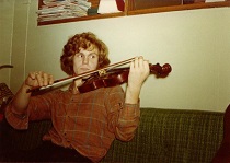 Da vi skulle reise hjem igjen etterpå, fikk jeg en impuls om å ta med meg fiolinen, som jeg hadde lært litt om hvordan spille på av meg selv, da jeg bodde der. Jeg hadde en lærebok om hvordan spille. Faren min kjørte oss hjem, og da vi skulle gå ut til bilen, gikk jeg til rommet jeg hadde hatt, og tok med meg fiolinen. Det var en fiolin jeg hadde kjøpt brukt i en av musikkbutikkene jeg visste om, som jeg ikke betalte my for. Men fiolinen var fin; den var bare merket av å være brukt. Da vi var hjemme, snakket jeg med min kone om at vi kunne spille sammen. Hun hadde en gitar, og vi kunne spille gitar og fiolin sammen, sa jeg. Min kone var enig. Jeg sa at gitar og fiolin var litt uvanlig, men at vi kunne klare å finne ut om noe vi kunne spille sammen. Min kone likte idéen, og ble i godt humør. En av dagene etterpå, før jeg hadde vært på arbeidet mitt igjen etter julehøytiden, spilte jeg litt på fiolinen, som jeg ikke hadde brukt i noe tid. Det er morsomt å spille musikkinstrumenter. Nedenfor er det et bilde som min kone tok av det, hun sa at jeg spilte så fint. På høyre side er det en liten del av gitaren hennes.